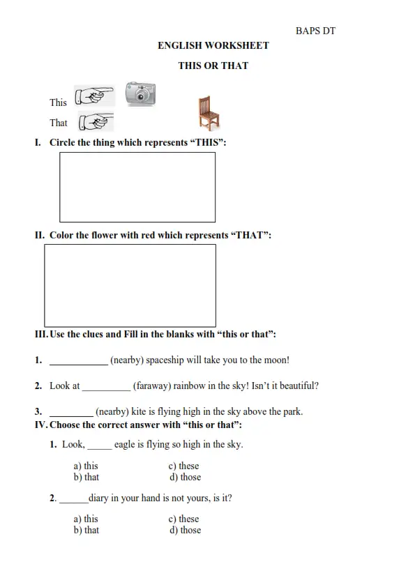 Free Printable Demonstratives ESL Worksheets – Boost Grammar Skills Effortlessly! Looking for free printable demonstratives ESL worksheets to teach "this, that, these, those" effectively? Our carefully designed worksheets help students master demonstratives through engaging exercises, perfect for classroom or self-study. These printable resources include fill-in-the-blanks, matching activities, and sentence creation tasks, tailored for beginners to intermediate learners. Ideal for ESL teachers and tutors, these no-cost worksheets save preparation time while offering clear examples and visual aids to reinforce grammar concepts. Whether focusing on spoken or written English, the materials provide structured practice to build confidence. Download instantly in PDF format for hassle-free printing! Each worksheet is SEO-optimized with keywords like "demonstratives ESL practice" and "free grammar printables" to help educators find quality content quickly. Enhance your lessons with interactive, easy-to-use resources that make learning demonstratives fun and effective.