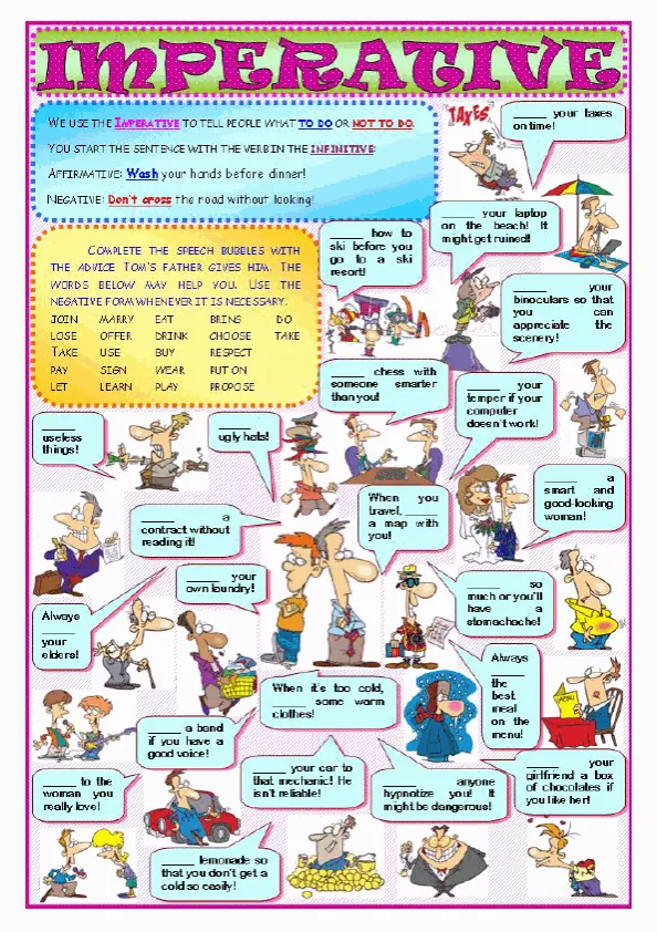 Free ESL Printable Imperative English Grammar Worksheet