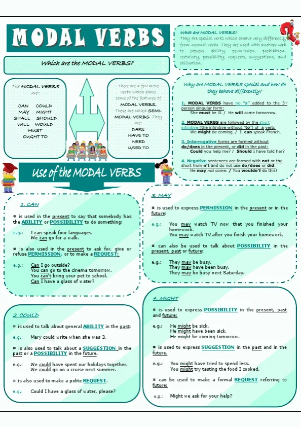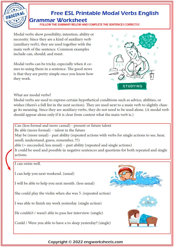 Free Esl Printable Modal Verbs English Grammar Worksheet
