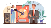 Look at the picture, listen (if available), and drag the letters to form the correct Artistic Occupation vocabulary word. Each word is scrambled separately to build spelling and recognition skills.