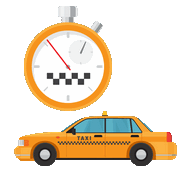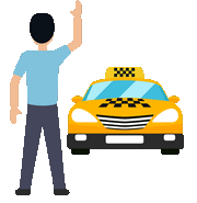 Look at the picture and type the English word for each Taxi term. No audio and no on-screen word — write only from meaning and image.