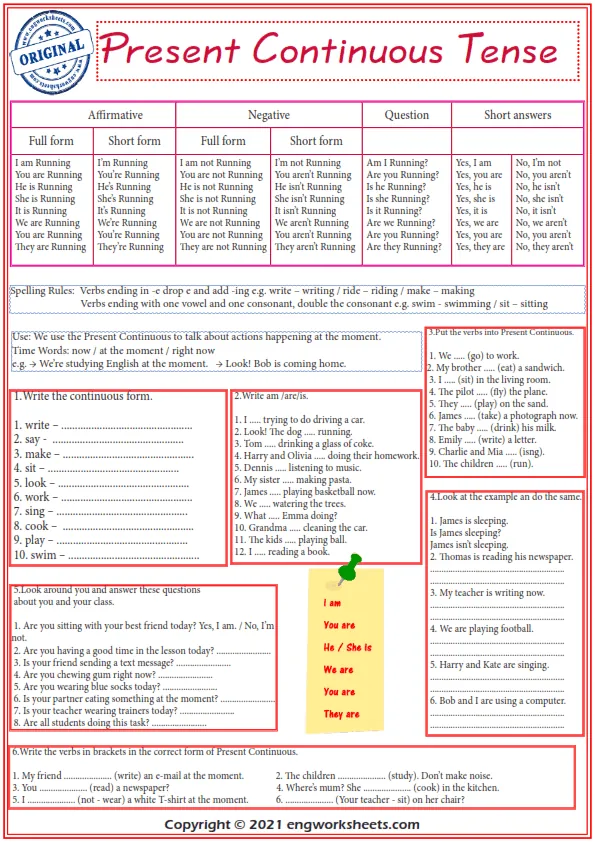 Present Continuous Tense Esl Printable Worksheets And Exercises For Kids