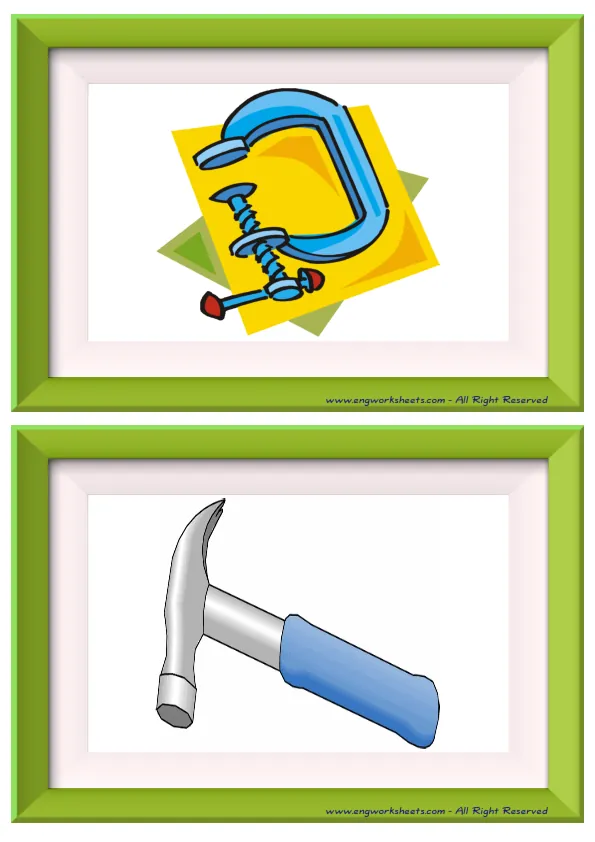 ESL Flashcard without words containing Hand Tools picture for kids and teachers.