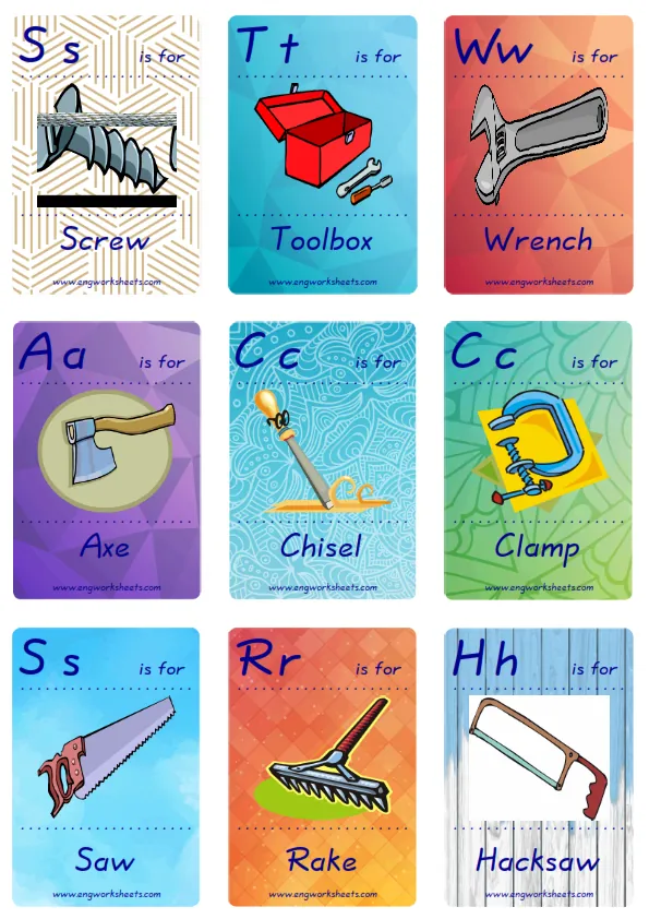 Mini size enjoyable ESL Flashcard Hand Tools for kids and teachers.