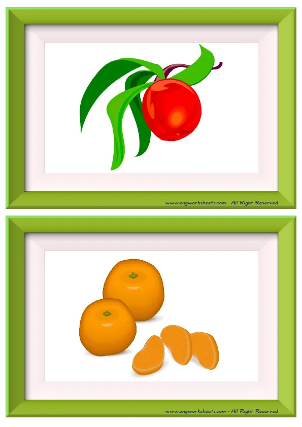 Mini size enjoyable ESL Flashcard Fruits for kids and teachers.