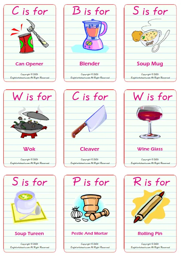 You should write the correct word from the multiple choice words given in our Kitchen English worksheet in the space provided below. It is a good activity to gain a habit of writing in English. It is provided with the answer key for you to check.