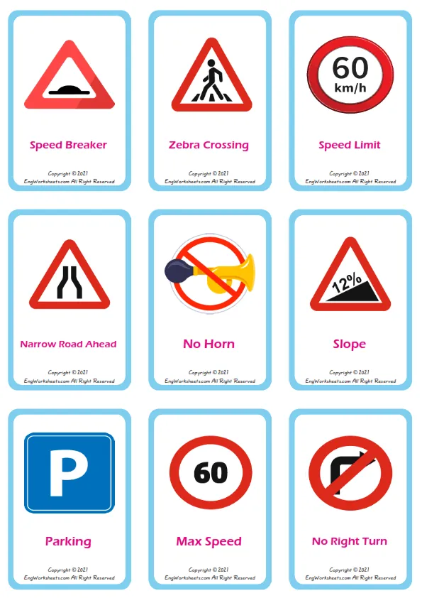You must match the pictures and words by drawing lines on the Road Signs English vocabulary worksheet. You can use it as a fun activity in your classroom.