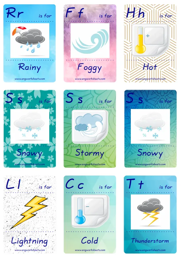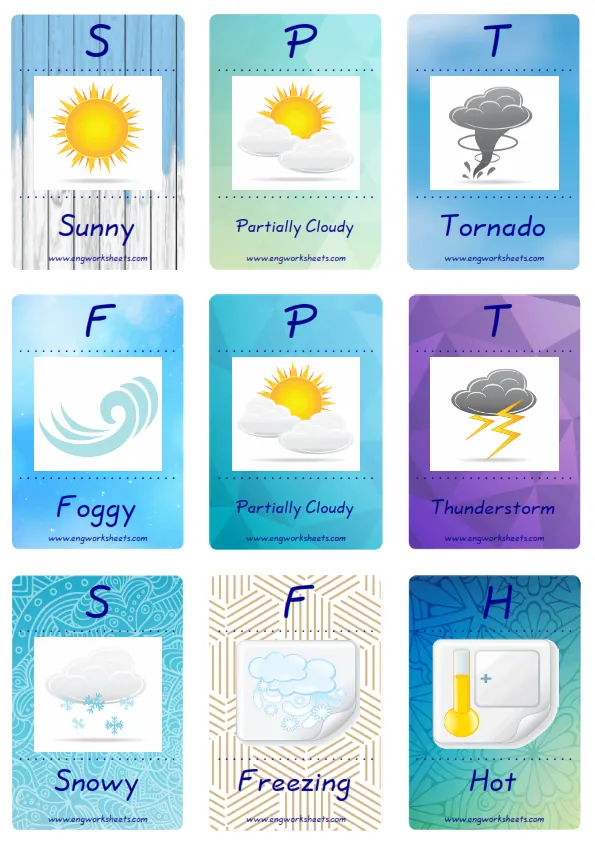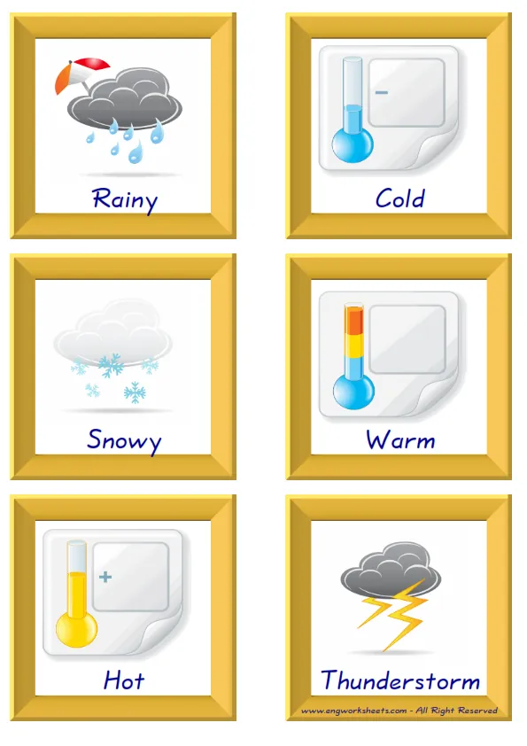 Mini size enjoyable ESL Flashcard Weather for kids and teachers.