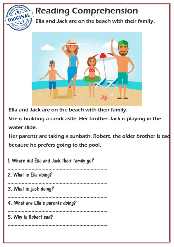 Keywords: Reading Comprehension, ESL Worksheets, English Reading Practice