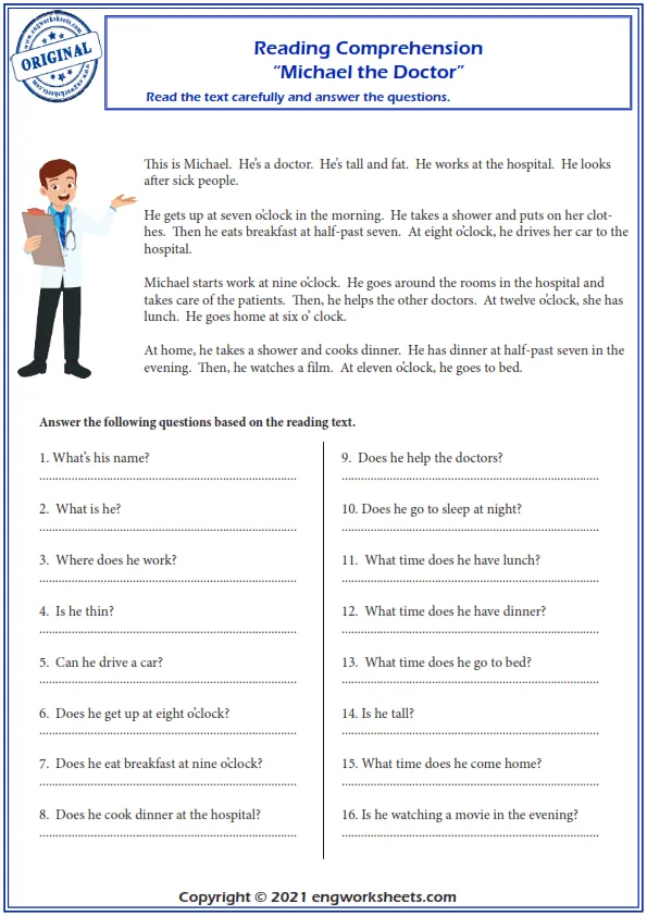 This Reading Comprehension Worksheet Gives Beginners Some Reading Practice. They First Have To Read The Passage, Then Complete The Activities That Follow. Over 10 Free Children's Stories Followed By Comprehension Exercises, As Well As Worksheets, Focused On Specific Comprehension Texts Sequencing, Comment, Main Idea, Reasoning, Etc. Use These Free, Printable Worksheets To Practice And Improve Reading Comprehension, Vocabulary, And Writing. Questions Come After Each Passage. These Worksheets Are Pdf Files And Can Be Printed. Questions For Grade 1 Students Are Focused On Recalling Information Directly From The Reading Text. Reading Comprehension, Reading Comprehension Worksheets, Vocabulary, Reading Comprehension Vocabulary, Reading Comprehension For Kids, Reading Comprehension Exercises, Reading Comprehension For Grade 1, Reading Comprehension Test, Free Reading Comprehension Worksheets, Reading Comprehension Worksheets Pdf With Answers.