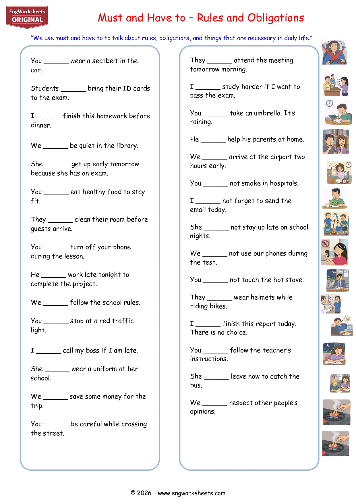 Must and Have to Fill in the Blanks Worksheet