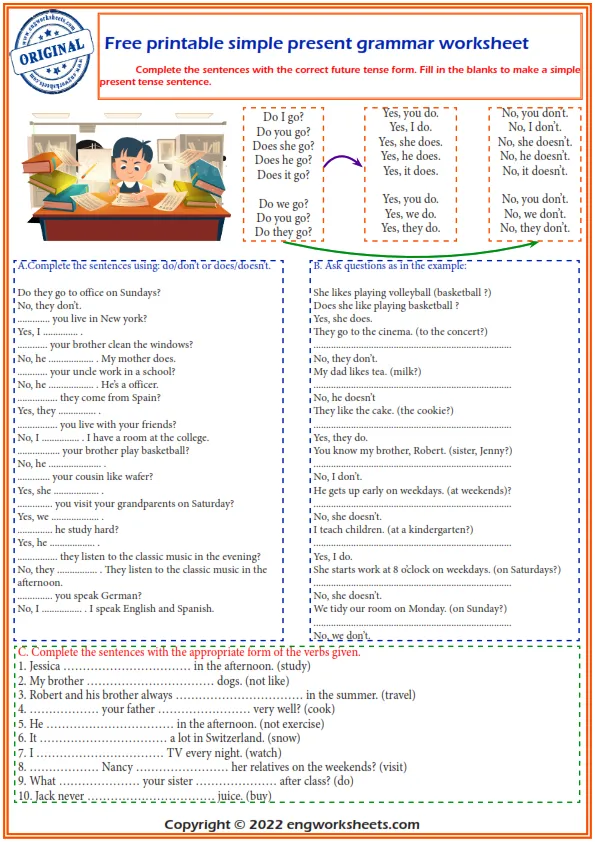 The Simple Present Tense Is A Verb Tense That Has Two Main Uses. We Use The Simple Present Tense When An Action Is Happening Now Or Happens Regularly Or Nonstop, Which Is Why It Is Sometimes Called The Present Tense. The Present Tense Is Formed By Using The Root Form According To The Person Or By Adding -S Or -Es To The End. Simple Present Grammar Worksheet. Free Printable Simple Present. Simple Present Grammar.