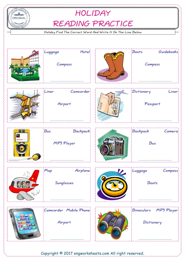 Holiday English Worksheet for Kids ESL Printable Picture Dictionary