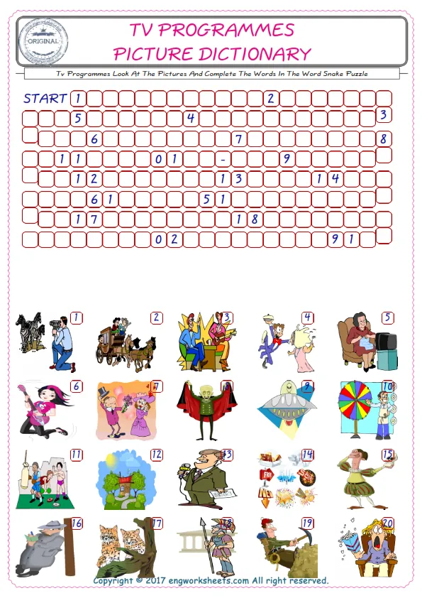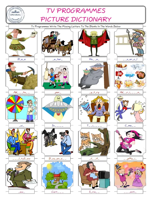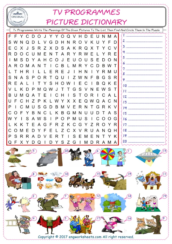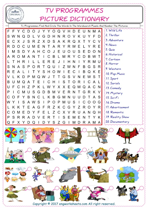 Tv Programmes English Worksheet for Kids ESL Printable Picture Dictionary