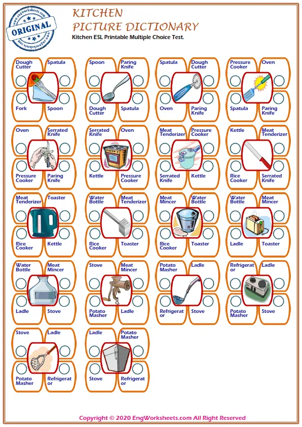 Finally, our multiple-choice English tests are a great way to assess learners' understanding of kitchen vocabulary. These tests include a range of questions related to cooking, baking, and kitchen utensils. They can be used as a formal assessment or as an informal tool for learners to practice their skills.