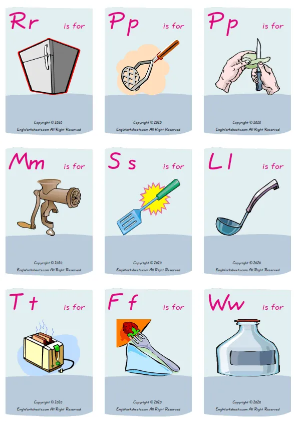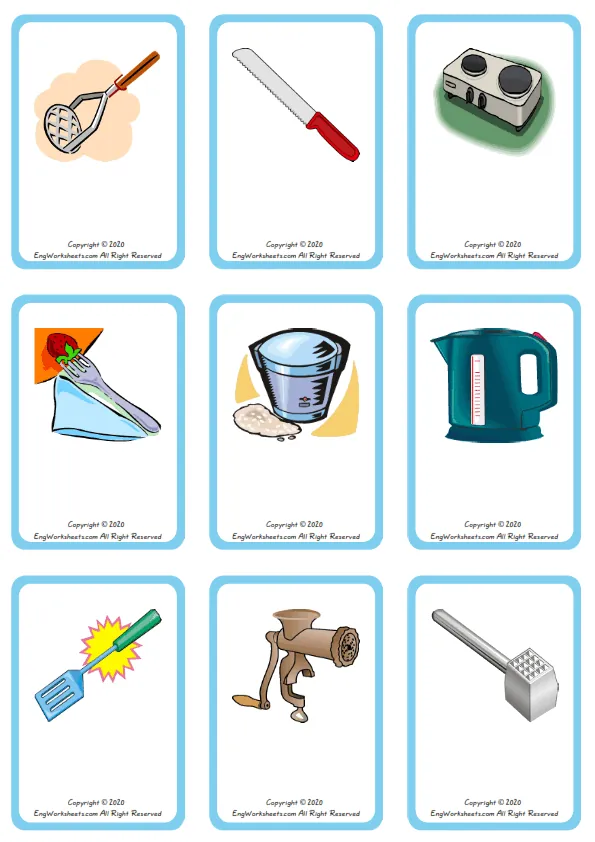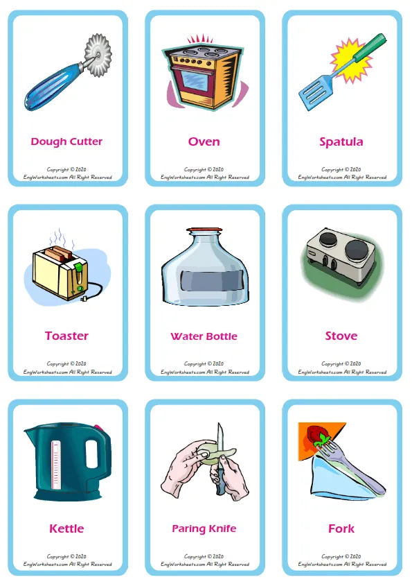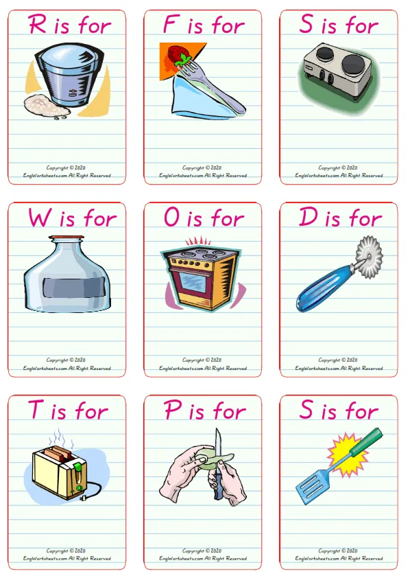 Next, we have a set of classroom posters in English that feature commonly used kitchen vocabulary. These posters are a great visual aid for learners to refer to as they study and practice new words related to the kitchen. They can also serve as a helpful reminder for everyday use in the kitchen.
