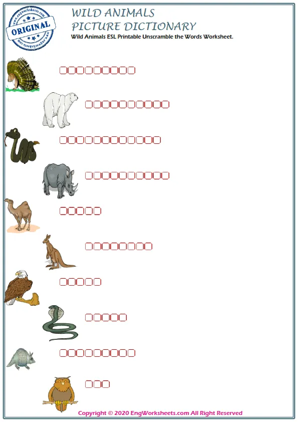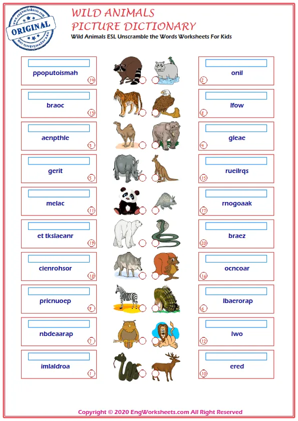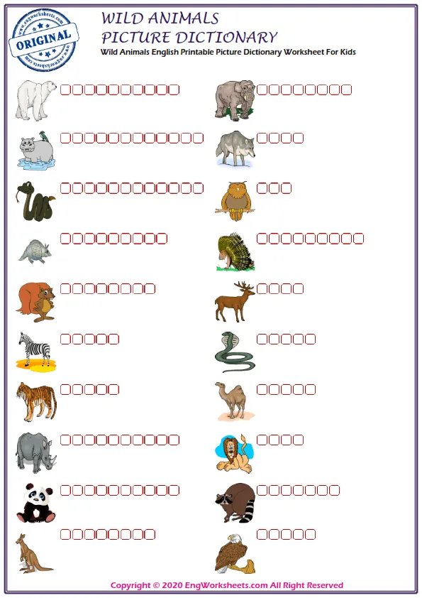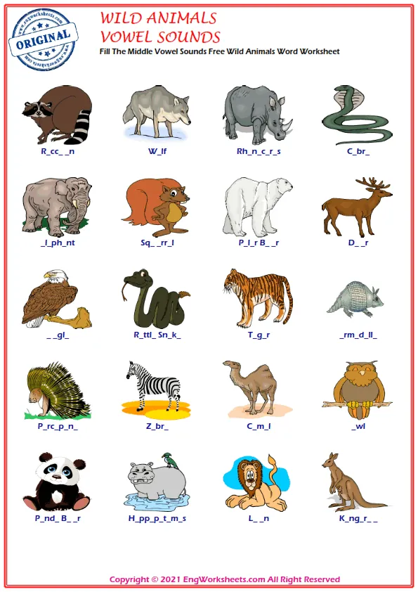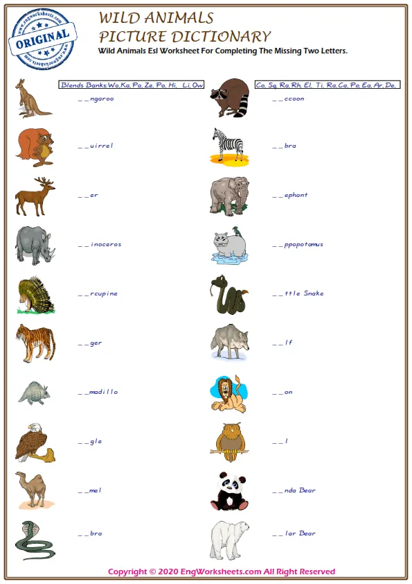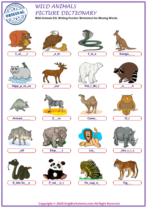 If you're looking for a more challenging wild animal-related exercise, our Missing English Word Completion Worksheets or Word Matching Exercise Worksheet may be just what you need. These exercises require you to fill in the blanks or match wild animal-related words, allowing you to test your knowledge in a more advanced way.
