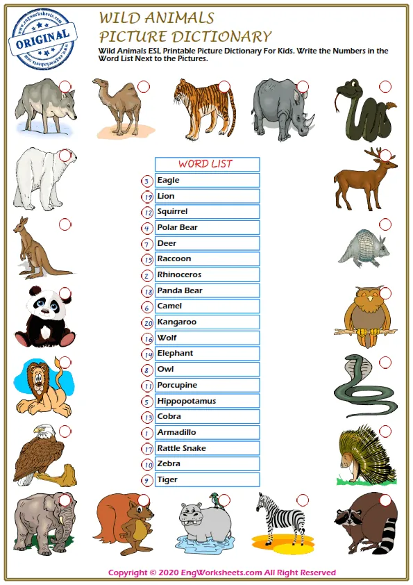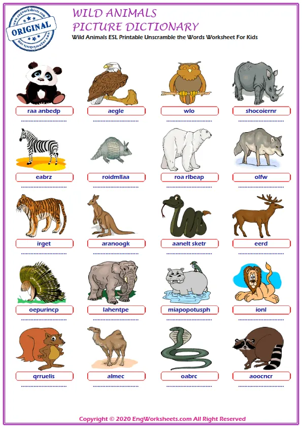 Wild Animals are fascinating creatures, and learning the vocabulary associated with them is essential for effective communication. That's why we offer a variety of wild animal-themed resources to help you expand your vocabulary and improve your language skills.
