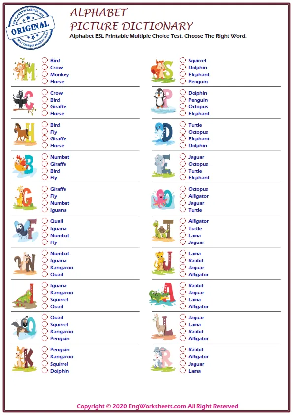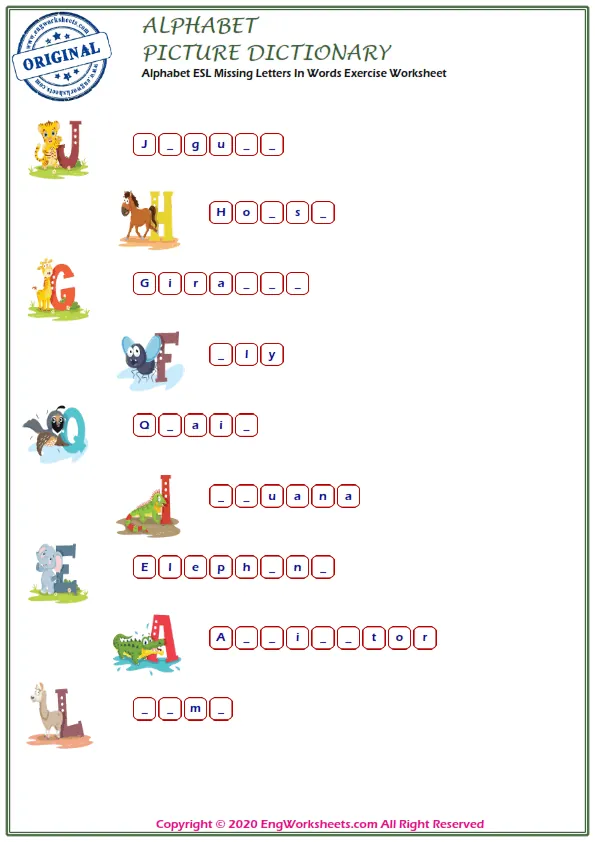 For a more challenging alphabet-related exercise, our Missing English Word Completion Worksheets or Word Matching Exercise Worksheet can help. These exercises require you to fill in the blanks or match alphabet-related words, allowing you to test your knowledge in a more advanced way.