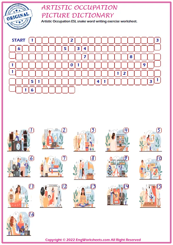 If you're looking for a more interactive Artistic Occupation-themed learning experience, our Word Search Puzzle Worksheet or Word Snake Puzzle Worksheet may be just what you need. These puzzles challenge kids to find Artistic Occupation-related words hidden within a grid or snake of letters, helping them to improve their vocabulary and spelling skills.