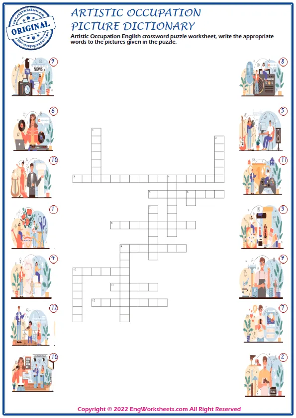 One of the Artistic Occupation ESL printable English worksheets you can use is the Illustrated Crossword Worksheet. This worksheet is perfect for introducing new vocabulary related to artistic occupations. The crossword puzzle is accompanied by pictures, making it easier for kids to understand and remember the words. It's a great way to teach English in a fun and interactive way.
