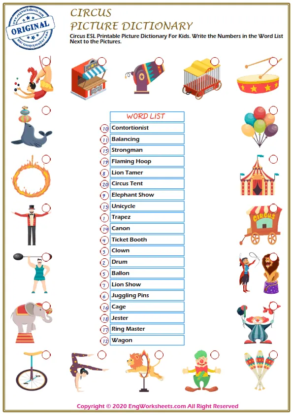In conclusion, Circus Free Printable English ESL Vocabulary Worksheets can be an enjoyable and effective resource for teaching vocabulary related to the circus. By utilizing a variety of worksheets and exercises, learners can develop their vocabulary skills in a fun and engaging way while also learning about the exciting world of the circus.