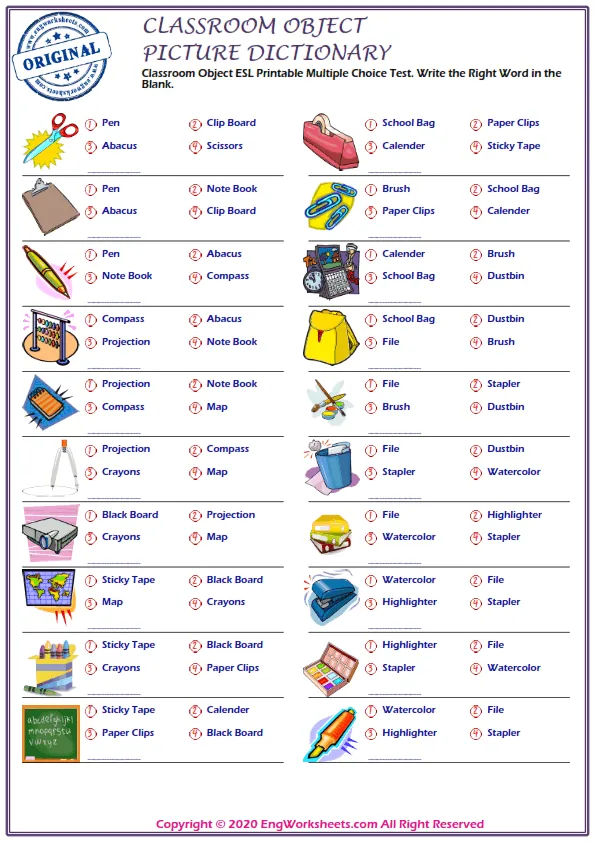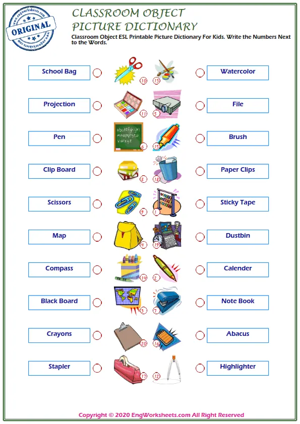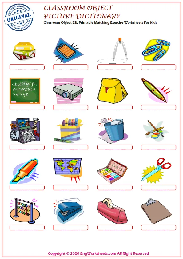 "Classroom Objects" are essential for any educational setting, and learning English vocabulary related to these objects is crucial for ESL learners. With the Classroom Objects Free Printable English ESL Vocabulary Worksheets, students can practice and master the words associated with the objects commonly found in classrooms.