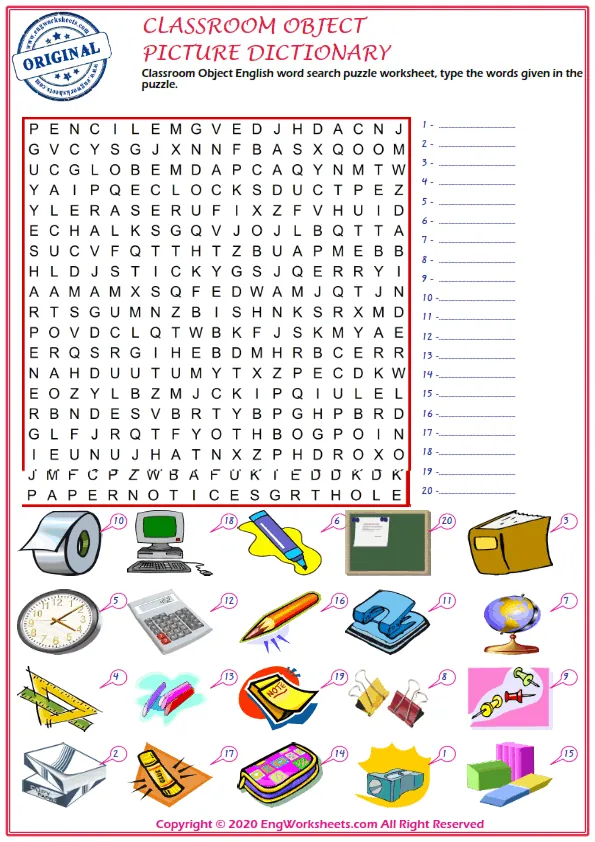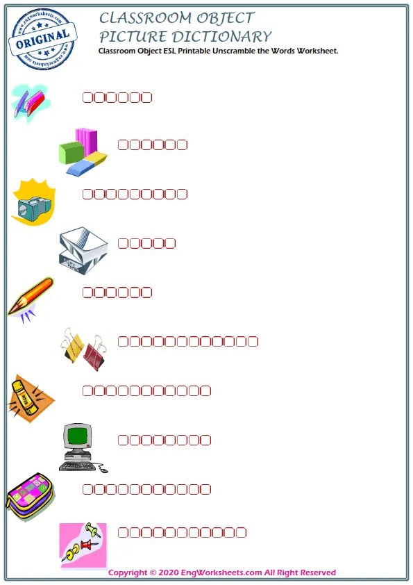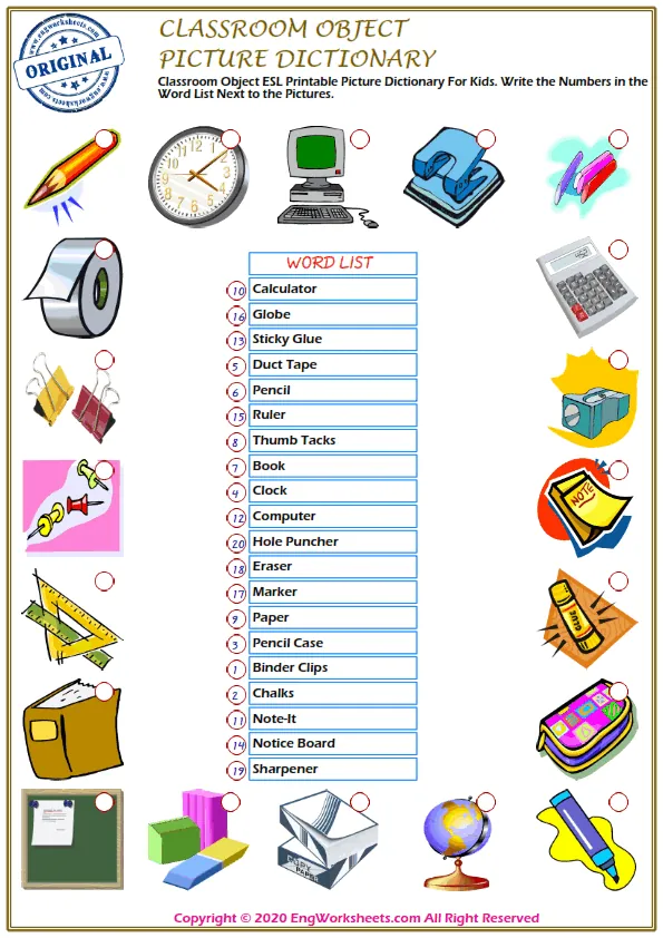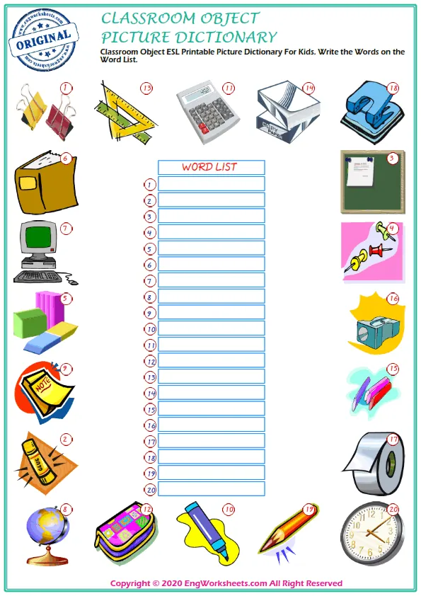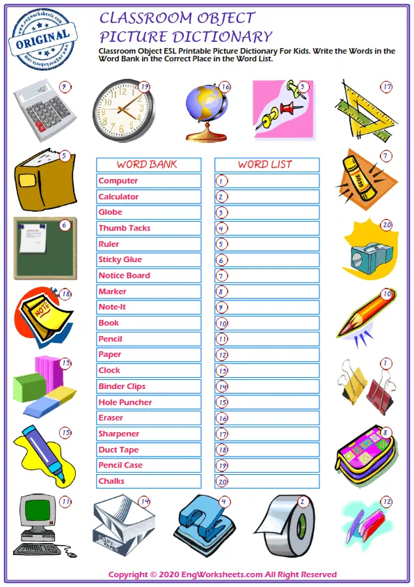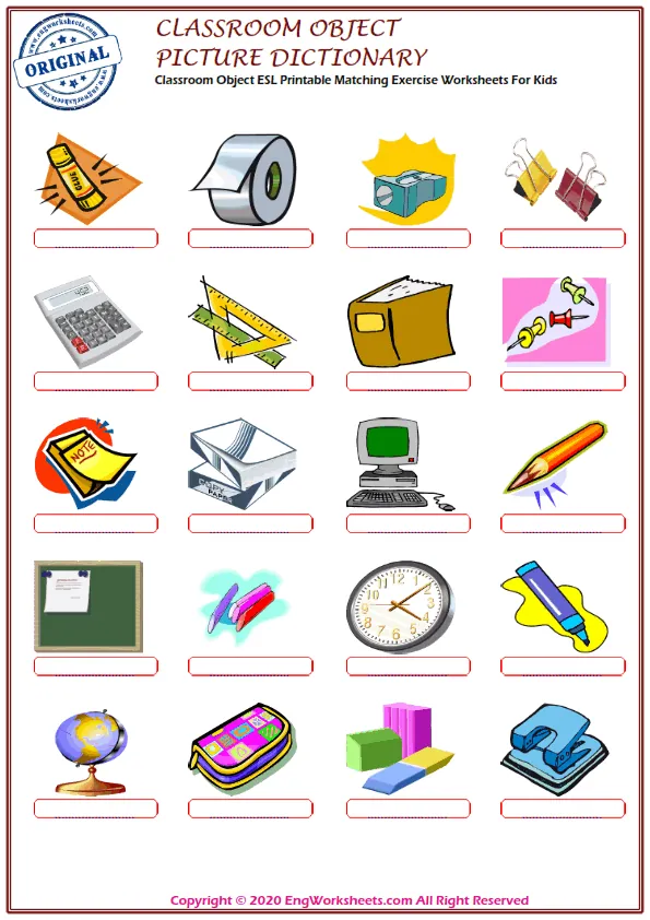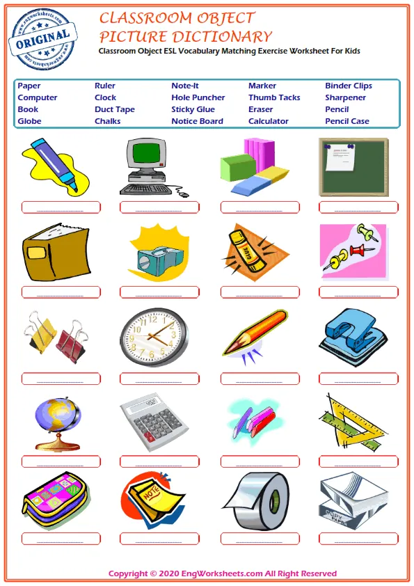 Boost your students' English language skills with these engaging Classroom Objects Free Printable ESL Vocabulary Worksheets. Our collection features a variety of educational resources that will make learning about classroom objects both enjoyable and effective. With SEO in mind, we'll discuss the various worksheet types, ensuring that "Classroom Objects" is included in every paragraph.