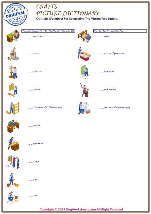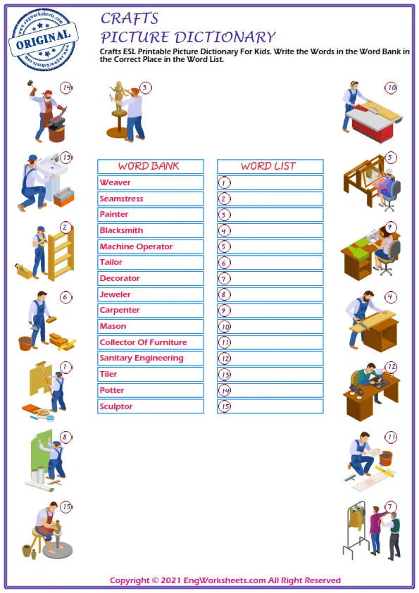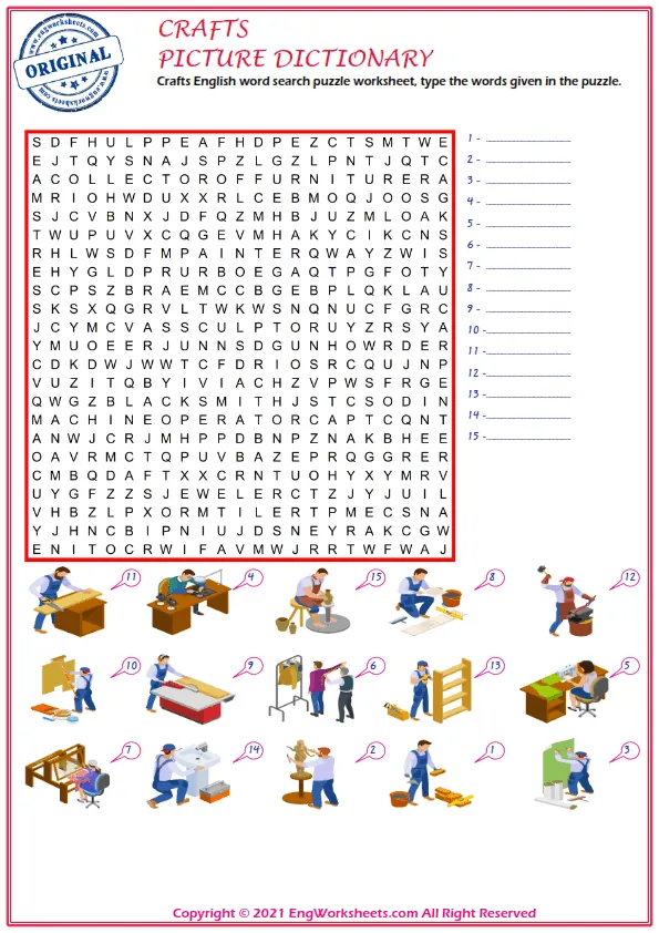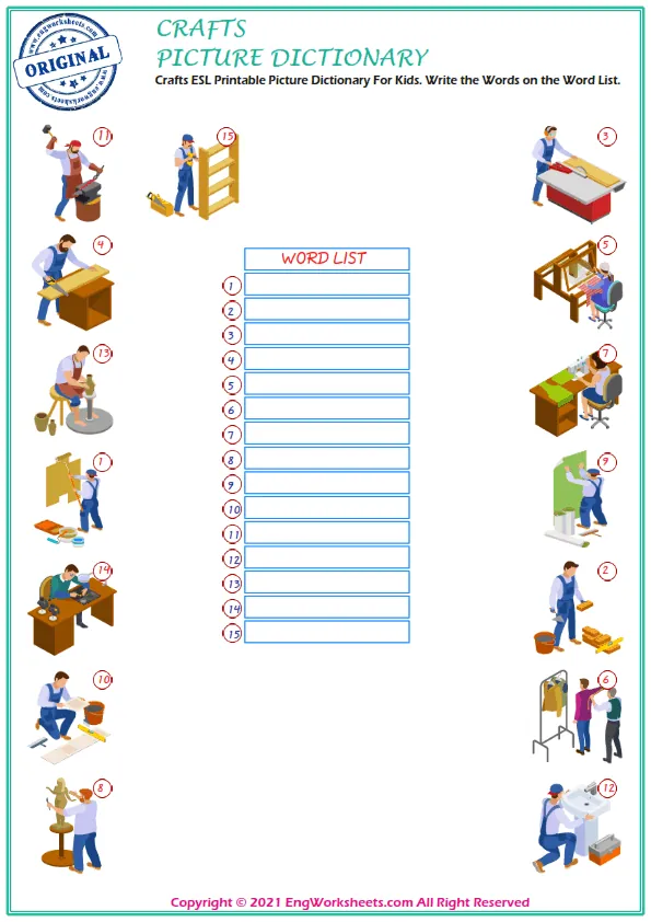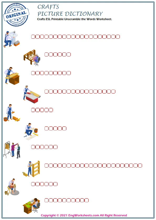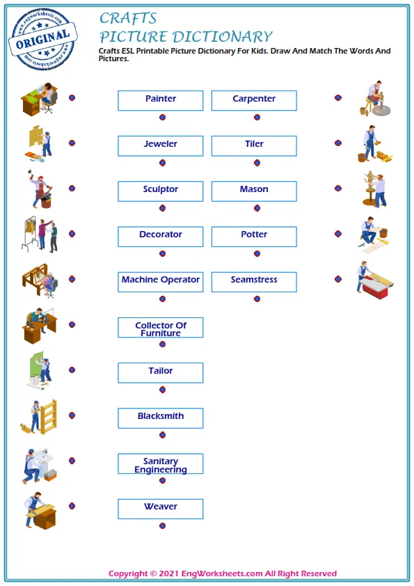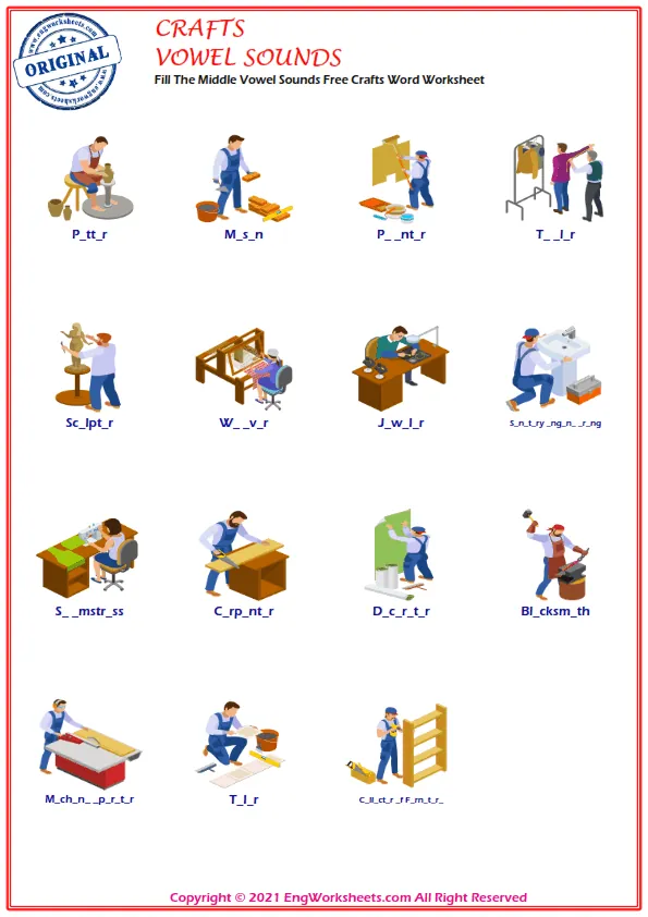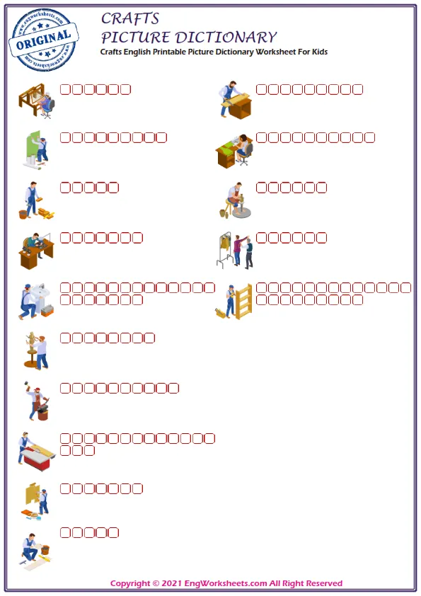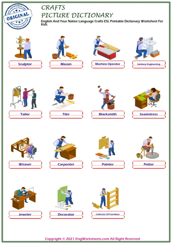 For a more challenging Crafts-related exercise, our Missing English Word Completion Worksheets or Word Matching Exercise Worksheet can help. These exercises require you to fill in the blanks or match Crafts-related words, allowing you to test your knowledge in a more advanced way.