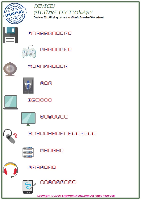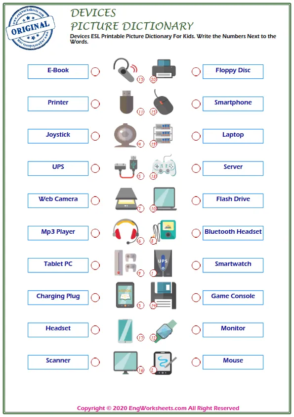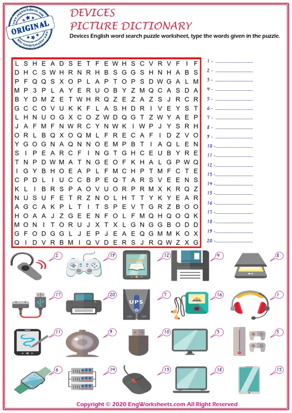 If you're looking for a more challenging device-related exercise, our Missing English Word Completion Worksheets or Word Matching Exercise Worksheet may be just what you need. These exercises require you to fill in the blanks or match device-related words, allowing you to test your knowledge in a more advanced way.