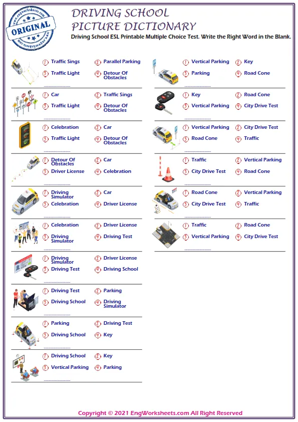 If you're looking for effective ESL vocabulary learning exercises related to driving, you've come to the right place! Our Driving School offers a variety of engaging activities and worksheets that can help you improve your English skills while also learning important driving-related terminology.