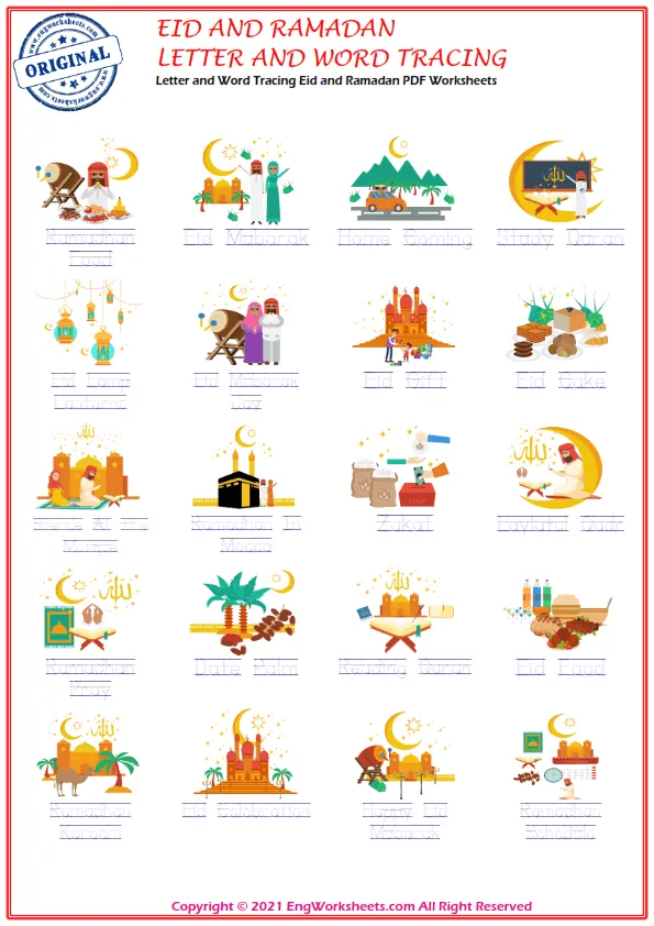 Whether you are a student looking to improve your English vocabulary or a teacher searching for engaging resources to use in the classroom, our Eid and Ramadan free printable English ESL vocabulary worksheets have something for everyone. So why wait? Start exploring these fun and educational materials today!