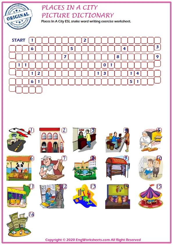 If you're looking for a more challenging city-related exercise, our Missing English Word Completion Worksheets or Word Matching Exercise Worksheet may be just what you need. These exercises require you to fill in the blanks or match city-related words, allowing you to test your knowledge in a more advanced way.