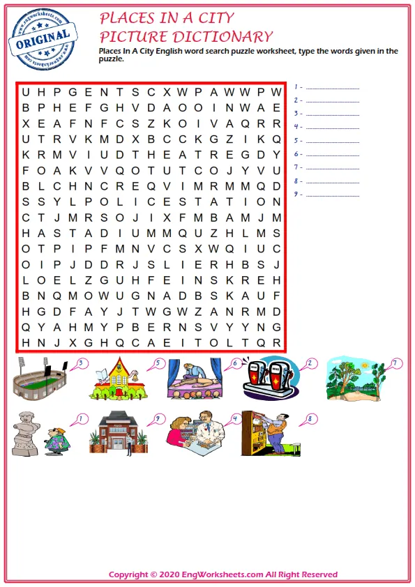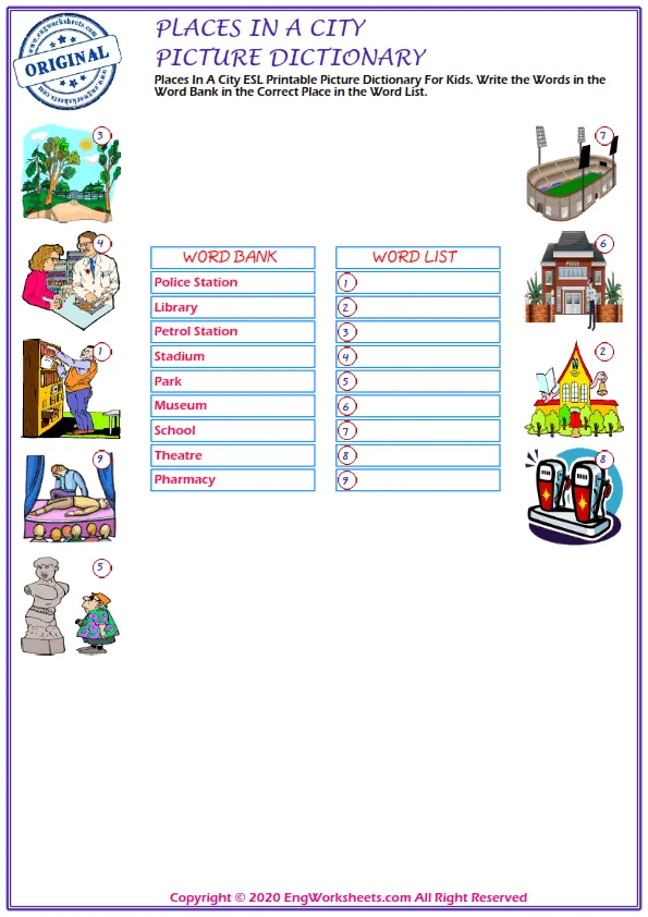 So if you're looking for ways to improve your English vocabulary related to Places In A City, try our free printable worksheets and exercises today!