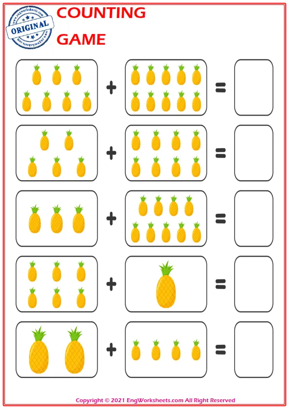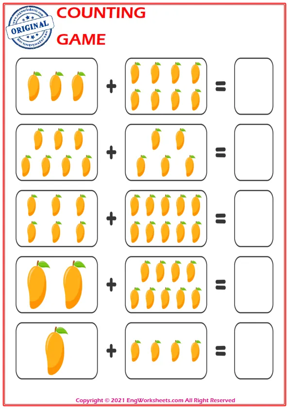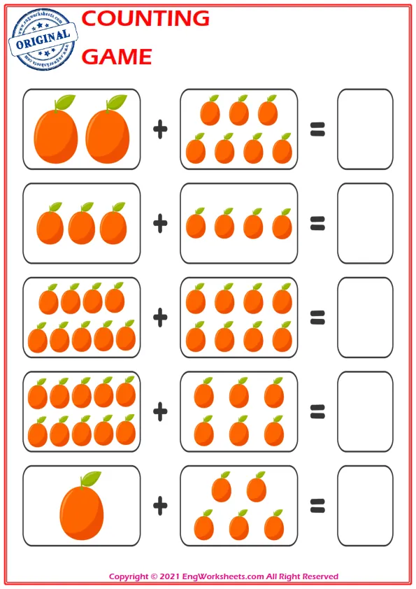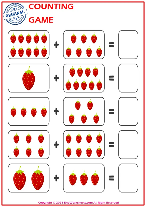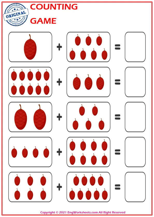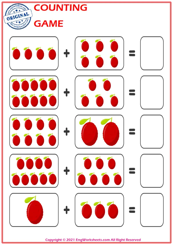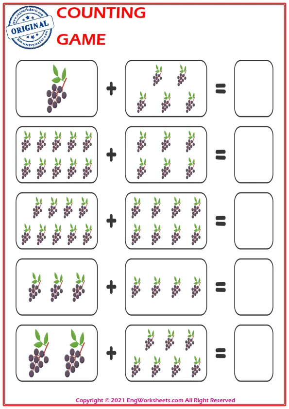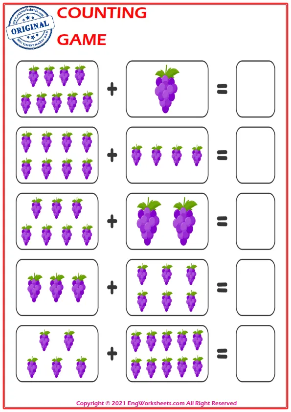 Counting with Objects: One of the most effective ways to teach counting is to use everyday objects. Engworksheets.com provides printable templates for counting with objects such as fruits, animals, or shapes. Encourage your child to count as they place each object on the worksheet, strengthening their understanding of numbers in a tangible way.