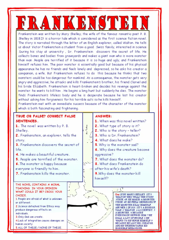 Overall, a Frankenstein Fairy Tales English worksheet can be a valuable tool for teachers and students alike, providing a fun and engaging way to practice and improve English language skills while exploring classic works of literature.