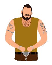 Look at the picture and type the English word for each Law And Justice term. No audio and no on-screen word — write only from meaning and image.