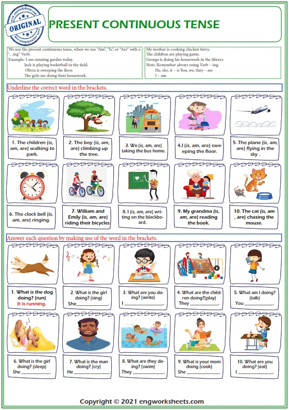 Present Continuous Tense Esl Printable Worksheets And Exercises For Kids