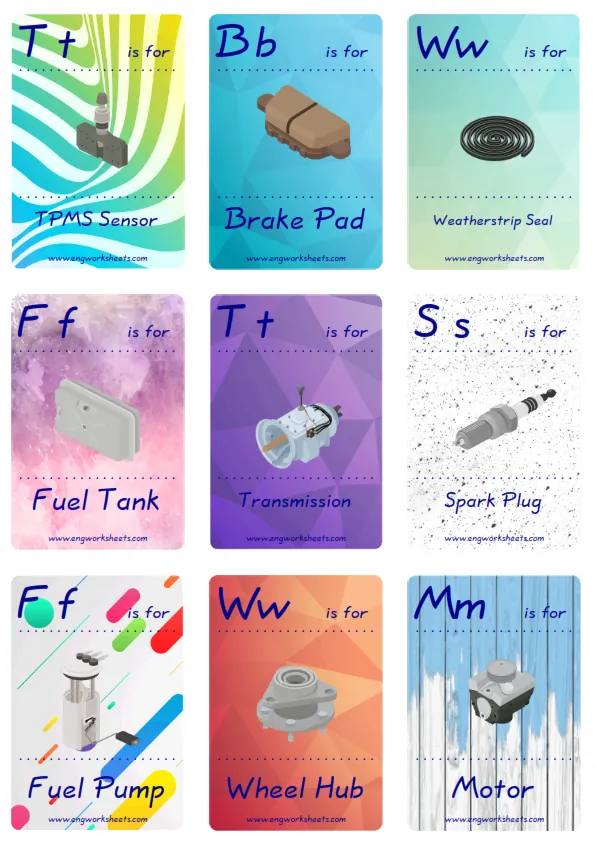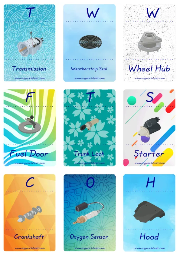 Mini size enjoyable ESL Flashcard Cars for kids and teachers.