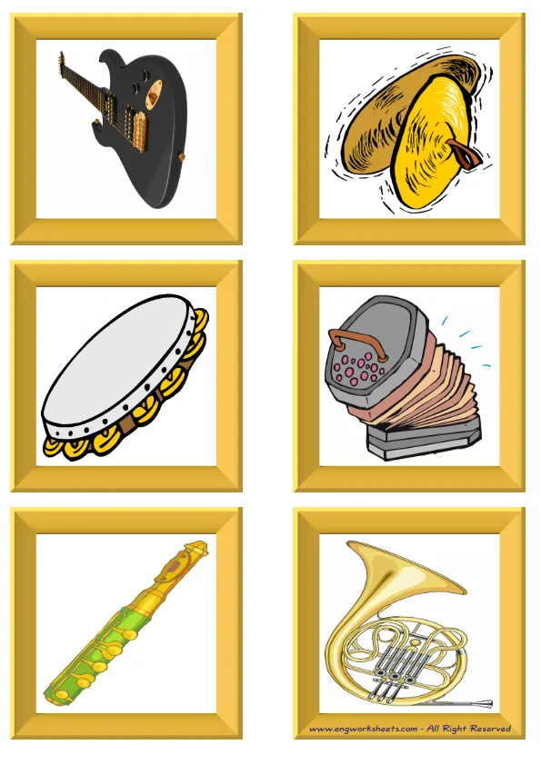 ESL Flashcard without words containing Musical Instruments picture for kids and teachers.