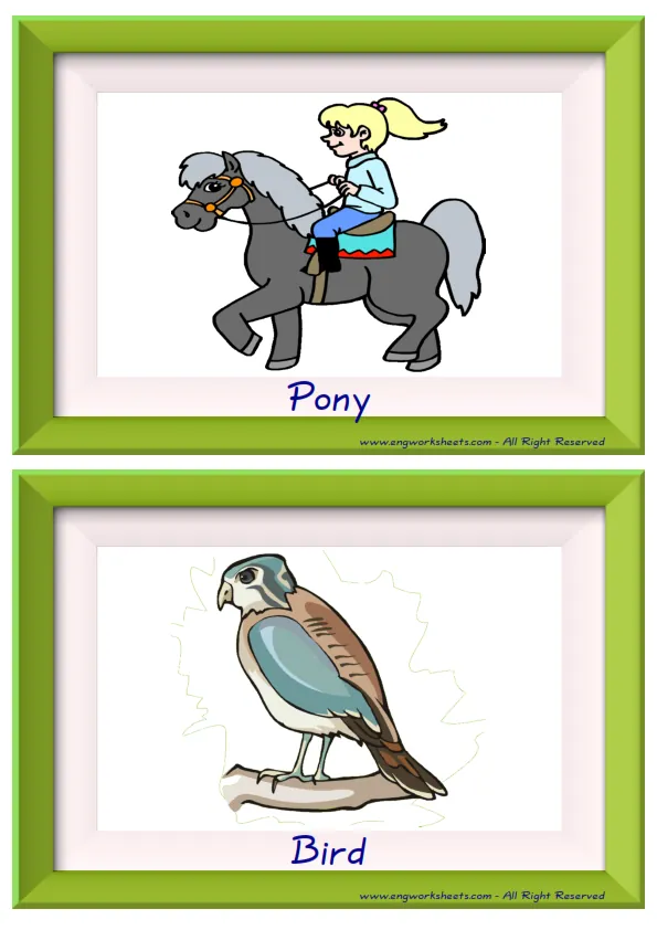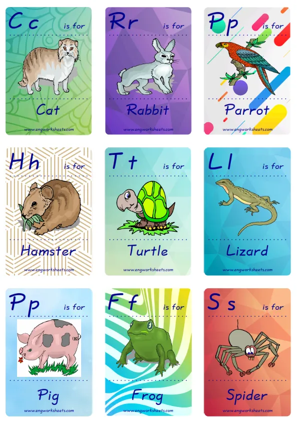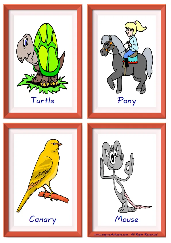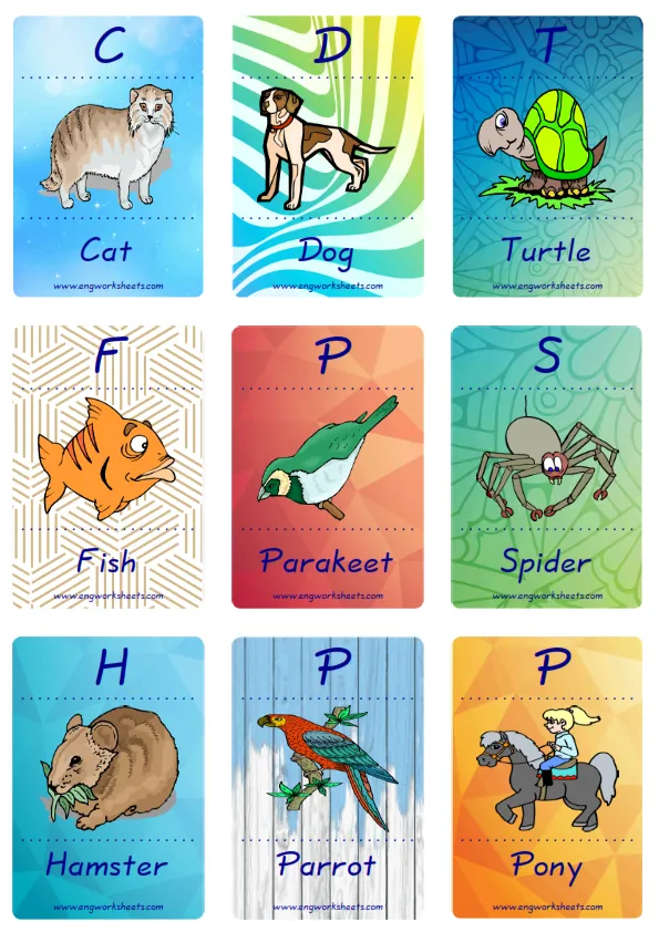 Mini size enjoyable ESL Flashcard Pets for kids and teachers.