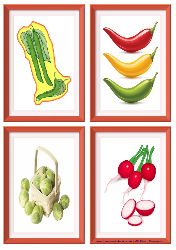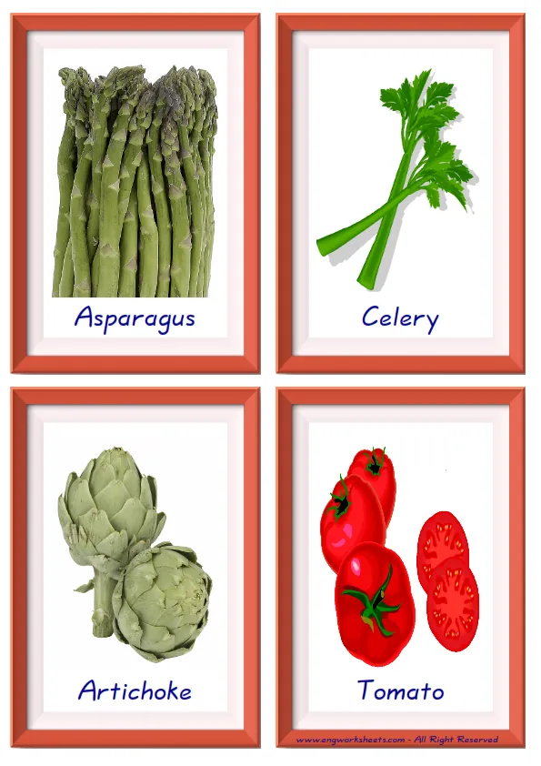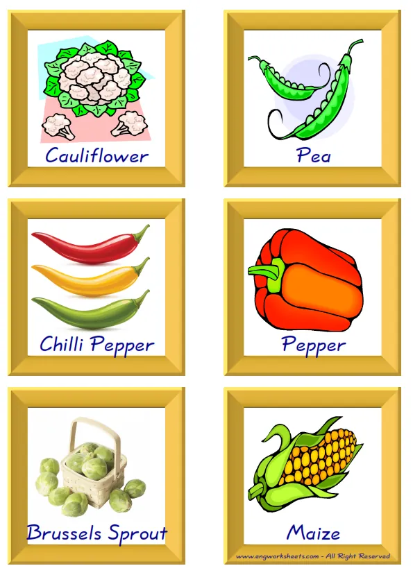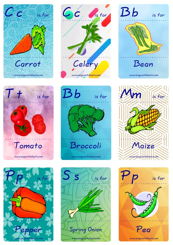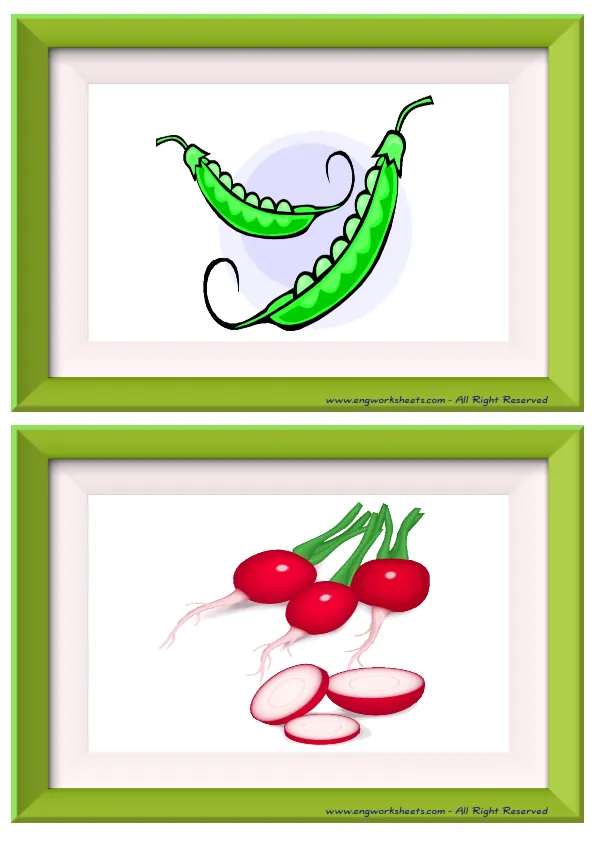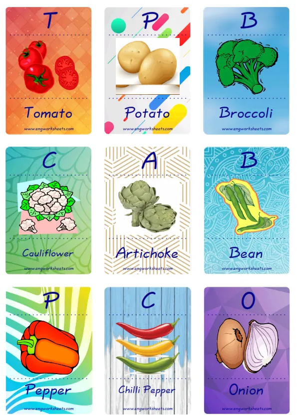 Mini size enjoyable ESL Flashcard Vegetables for kids and teachers.