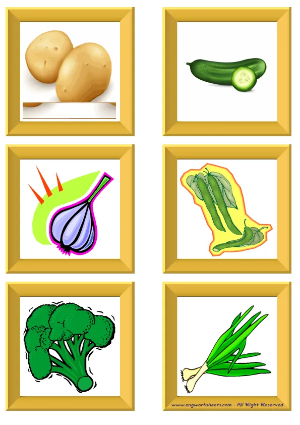 Half page ESL Flashcard without words containing Vegetables picture for kids and teachers.