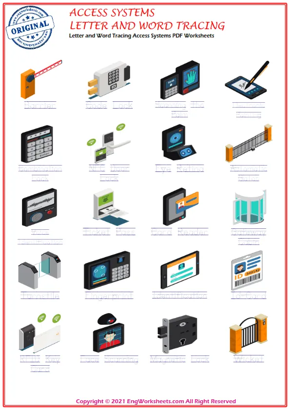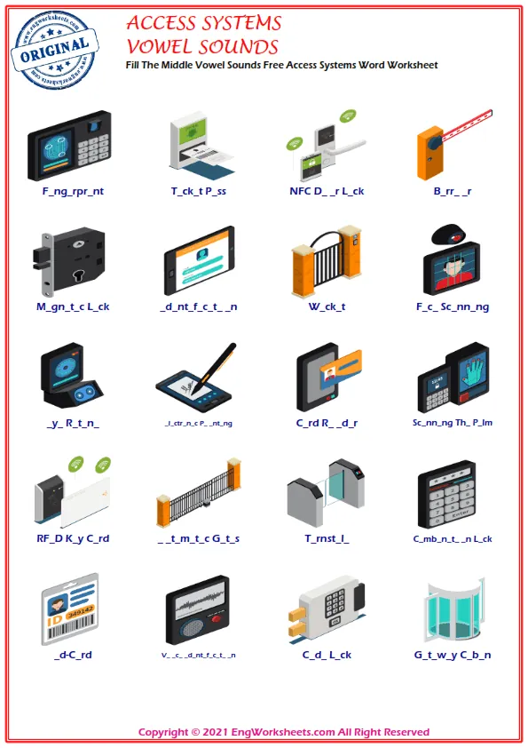 You can check the words we gave in our first Access Systems worksheet for kids on this worksheet. You can check whether you have learned the Access Systems words by writing the Access Systems words you associate with the Access Systems pictures in the space below the pictures. Correct answers are given on the second page. You can print the Access Systems worksheets together with the answer key.