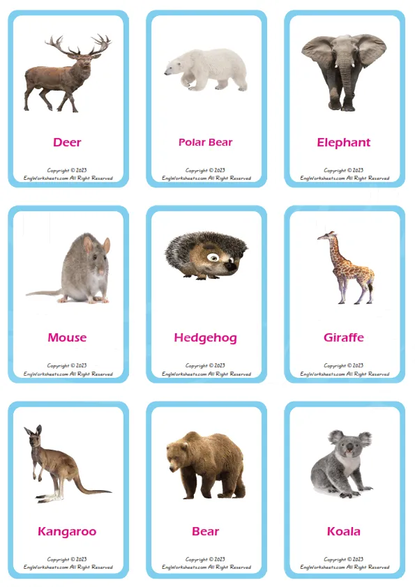 You are asked to find out which word the pictures are given in our multiple-choice Animals English worksheet for children belong. Mark the correct 4 words around the picture. The correct answers of English cuisine words are marked on the second page.
