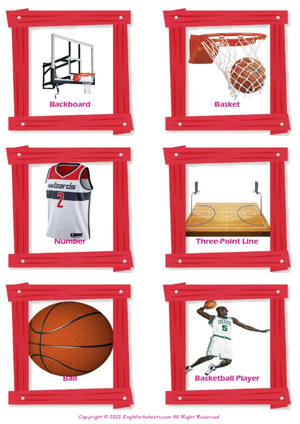 Flashcard pictures of the Basketball without words, with nine pictures on a page. You can print our worksheet prepared using Basketball pictures in different sizes and use it for remembering in your classroom or at home. Using thick paper, you can use it with your friends to carry it in your pocket or purse at all times or to play games in the classroom. Thus, learning will become much more fun.