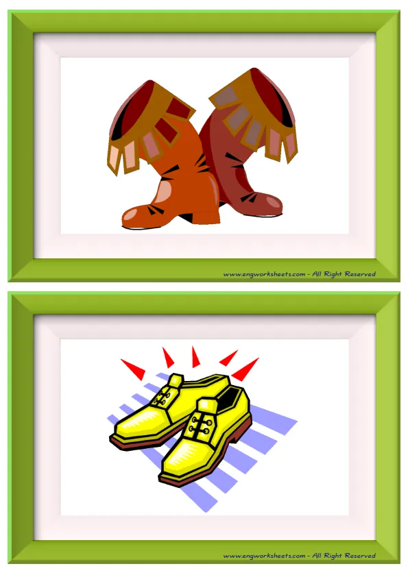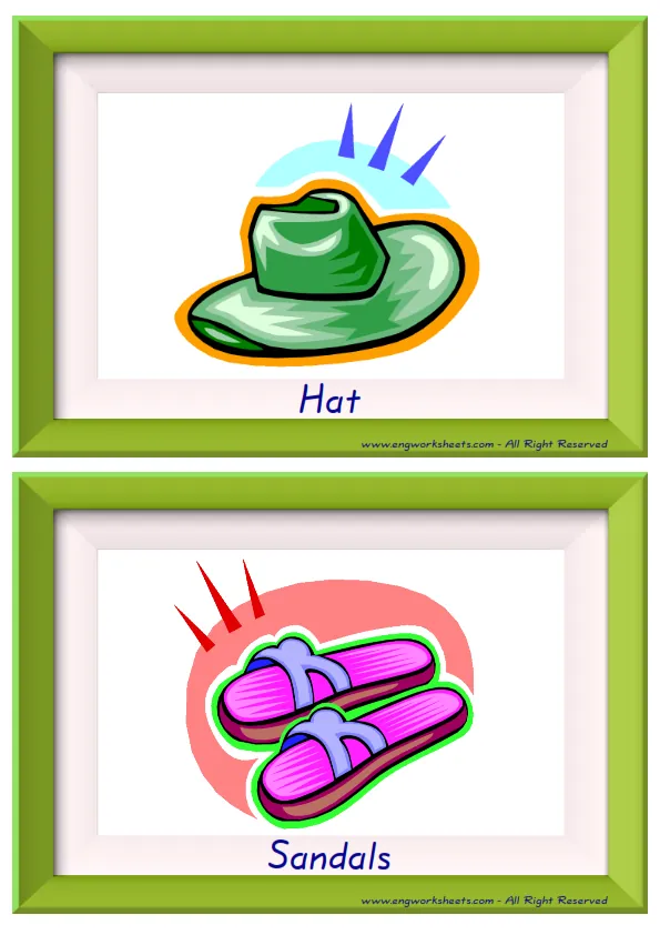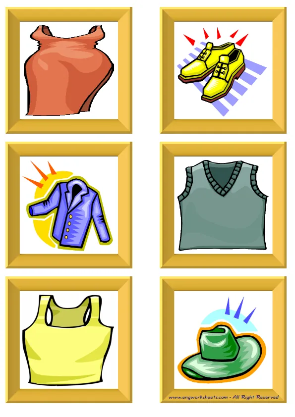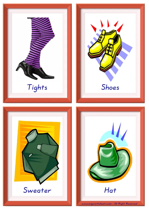 Half page ESL Flashcard without words containing Clothes picture for kids and teachers.