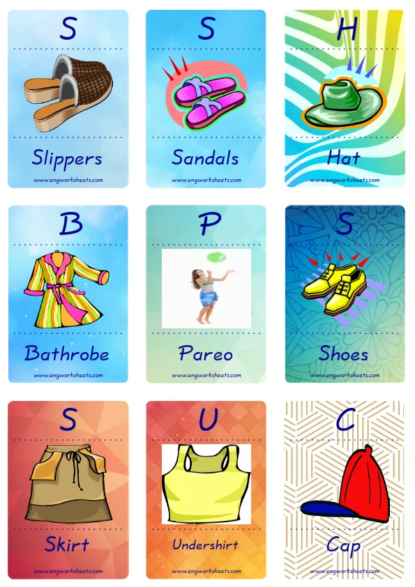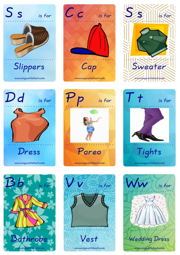 Mini size enjoyable ESL Flashcard Clothes for kids and teachers.