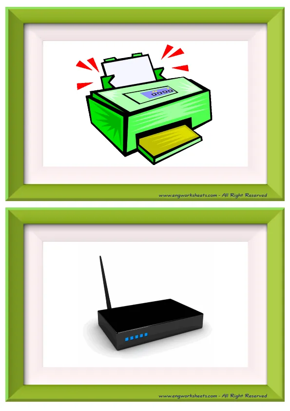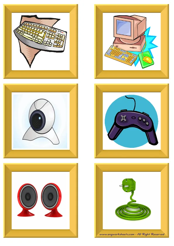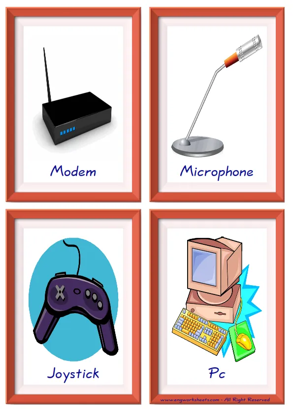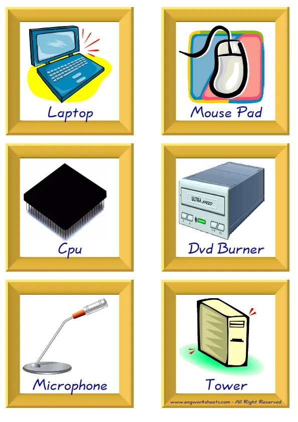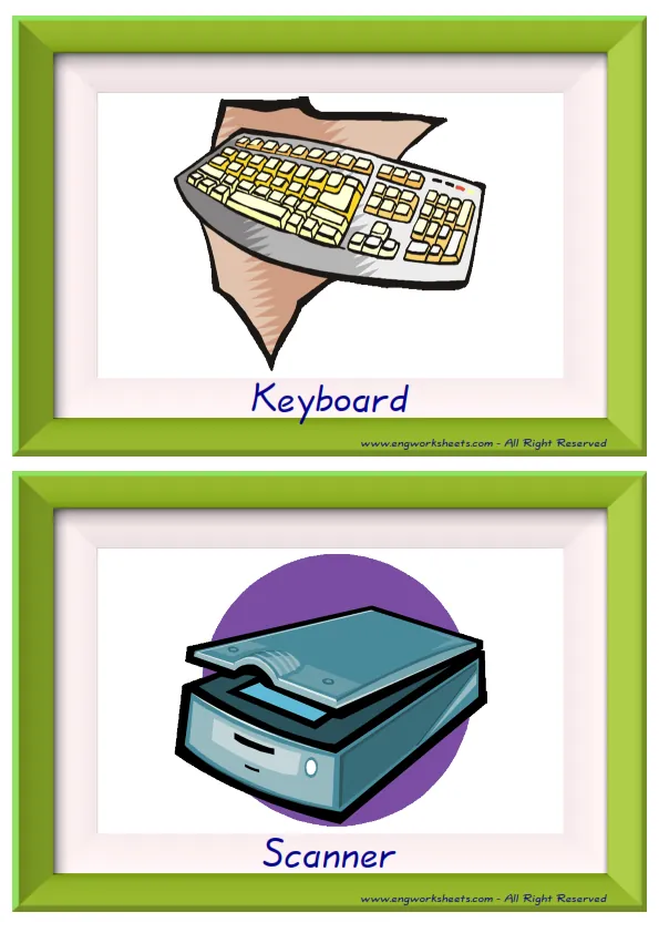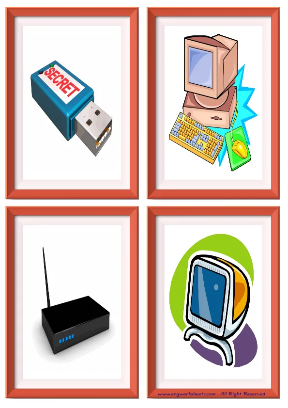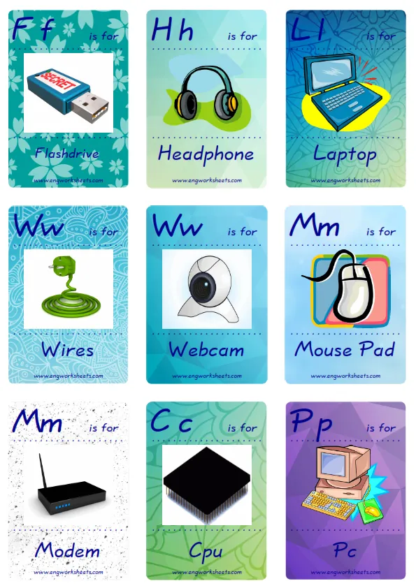 Mini size enjoyable ESL Flashcard Computer Parts for kids and teachers.