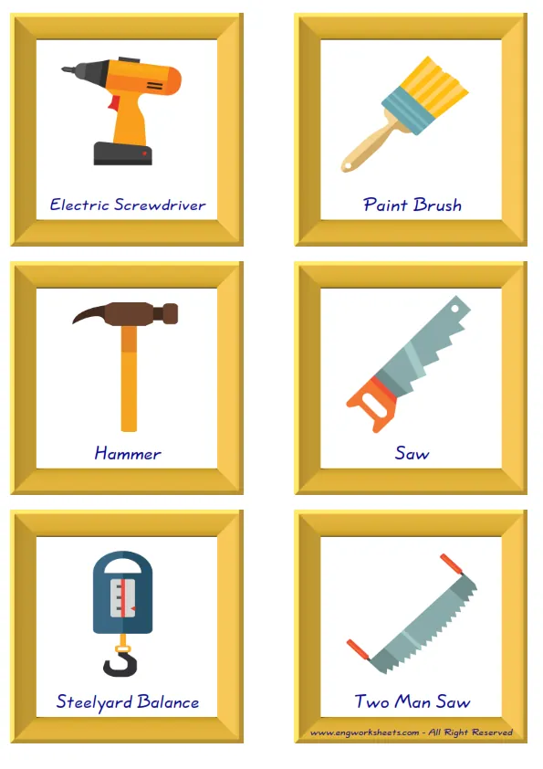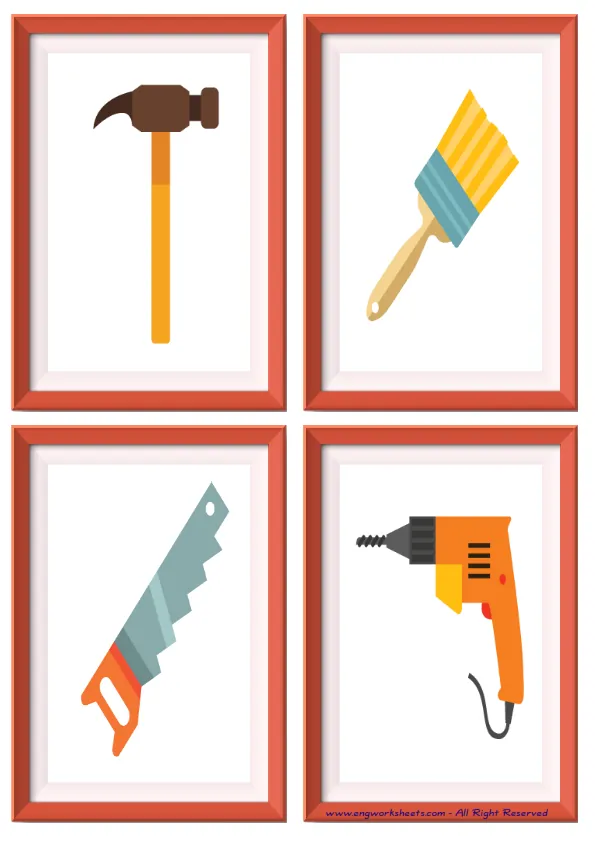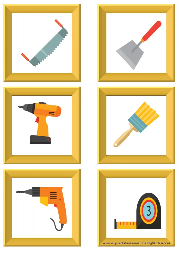 ESL Flashcard without words containing Construction Tools picture for kids and teachers.